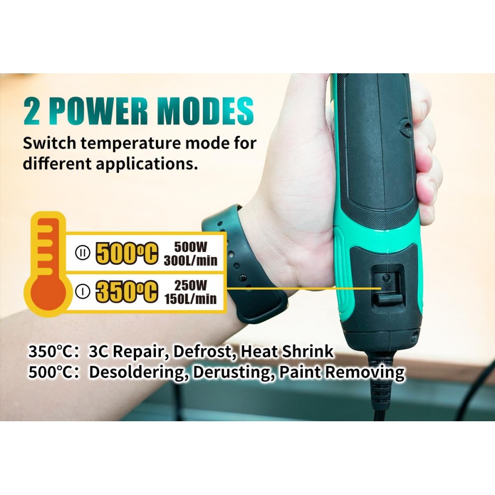 Mini tobera de aire caliente con dos niveles de temperatura.