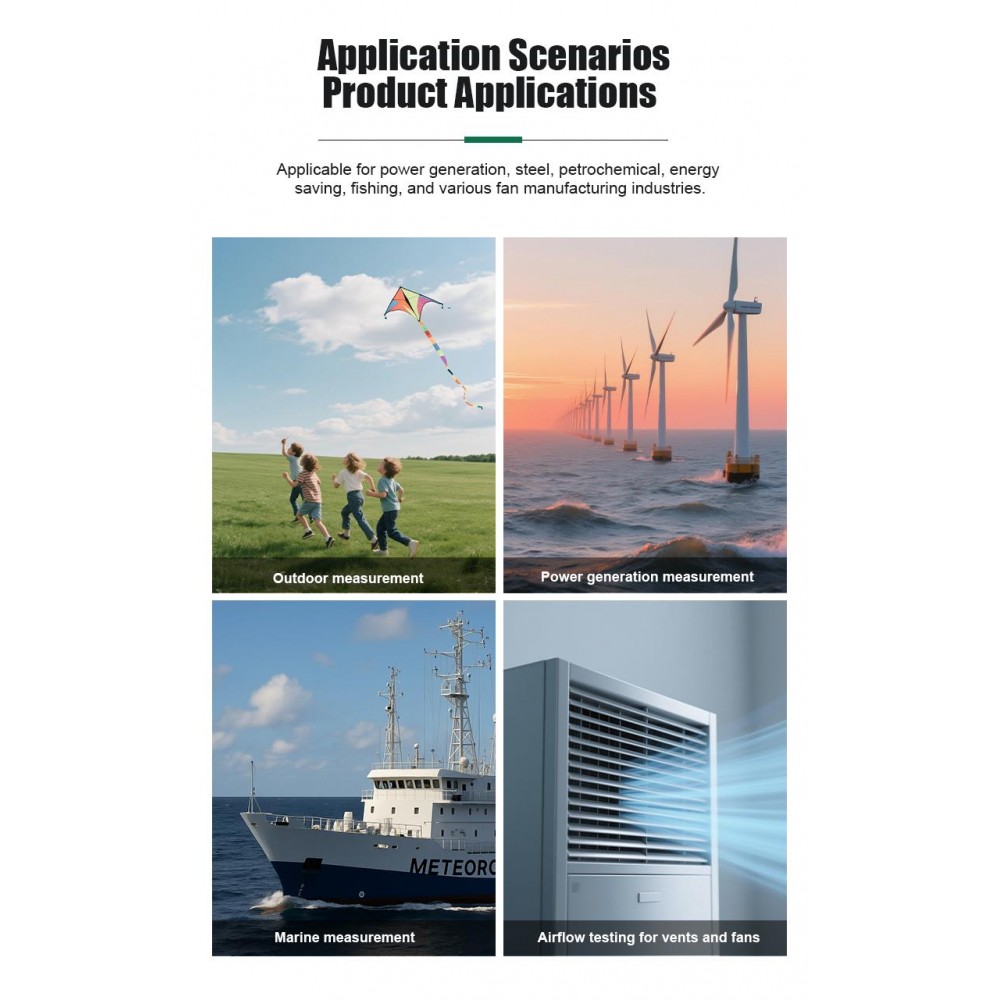 Medidor de caudal y velocidad del aire para aplicaciones en navegación, ventilación energía eólica, sistemas de aire acondicionado, industria farmacéutica, etc.