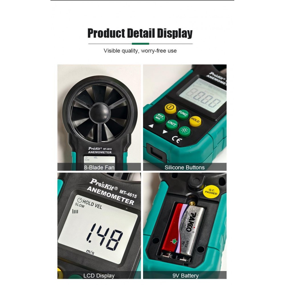 MT-4615 Anemómetro digital para medir velocidad y volumen del aire de Proskit