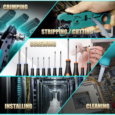 Está compuesto por una maleta de alta durabilidad con estructura de aluminio y fibra de carbono multicapa y una selección de herramientas que facilitarán cualquier trabajo de instalación de cableado.