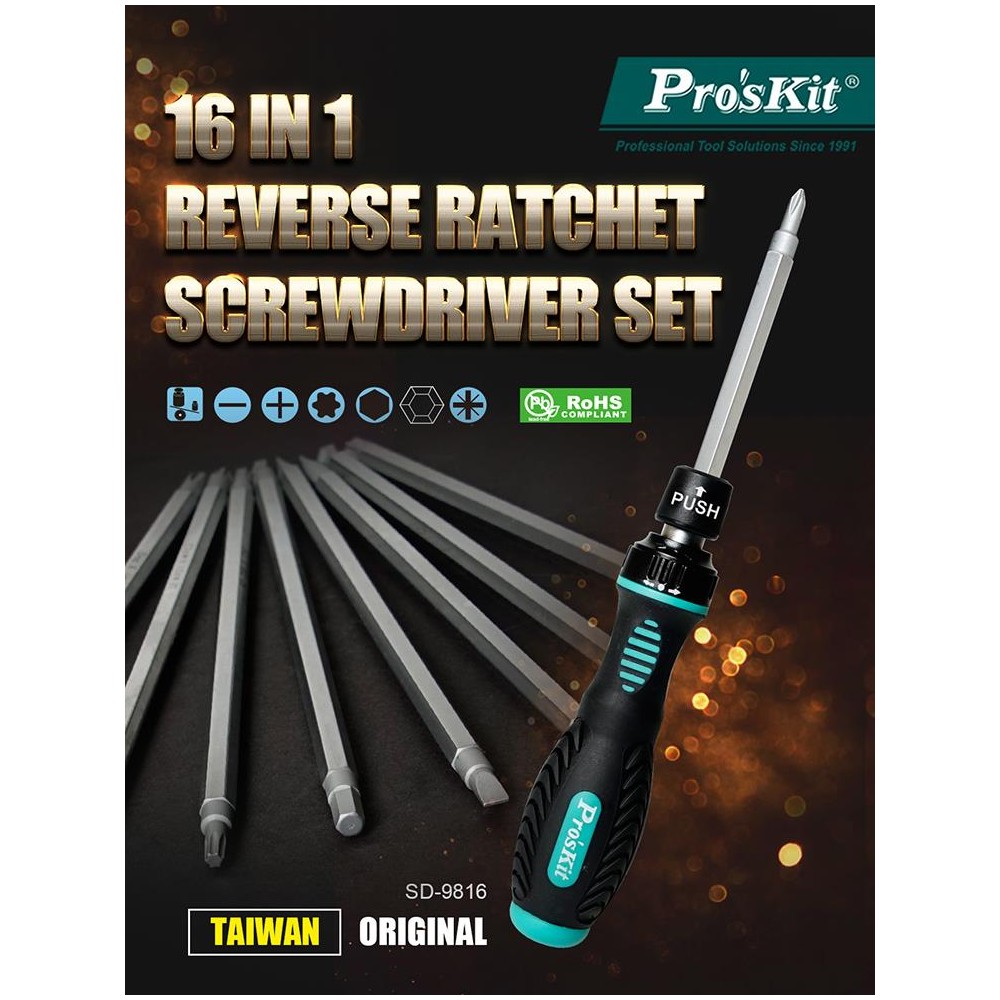 SD-2616 Marca PROSKIT Juego de llaves y destornilladores con adaptador tipo carraca de...