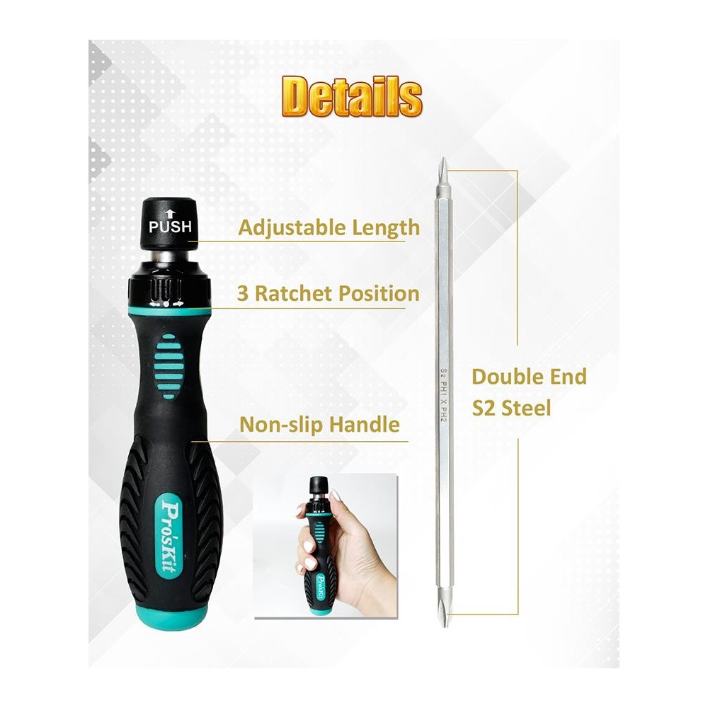 SD-9810A Marca PROSKIT Destornillador con carraca y 10 puntas de intercambio rápido de...
