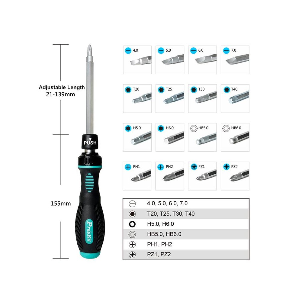 SD-9821 Marca PROSKIT SD-9821 - Destornillador múltiple 16 en 1 de Proskit Destornillador de...