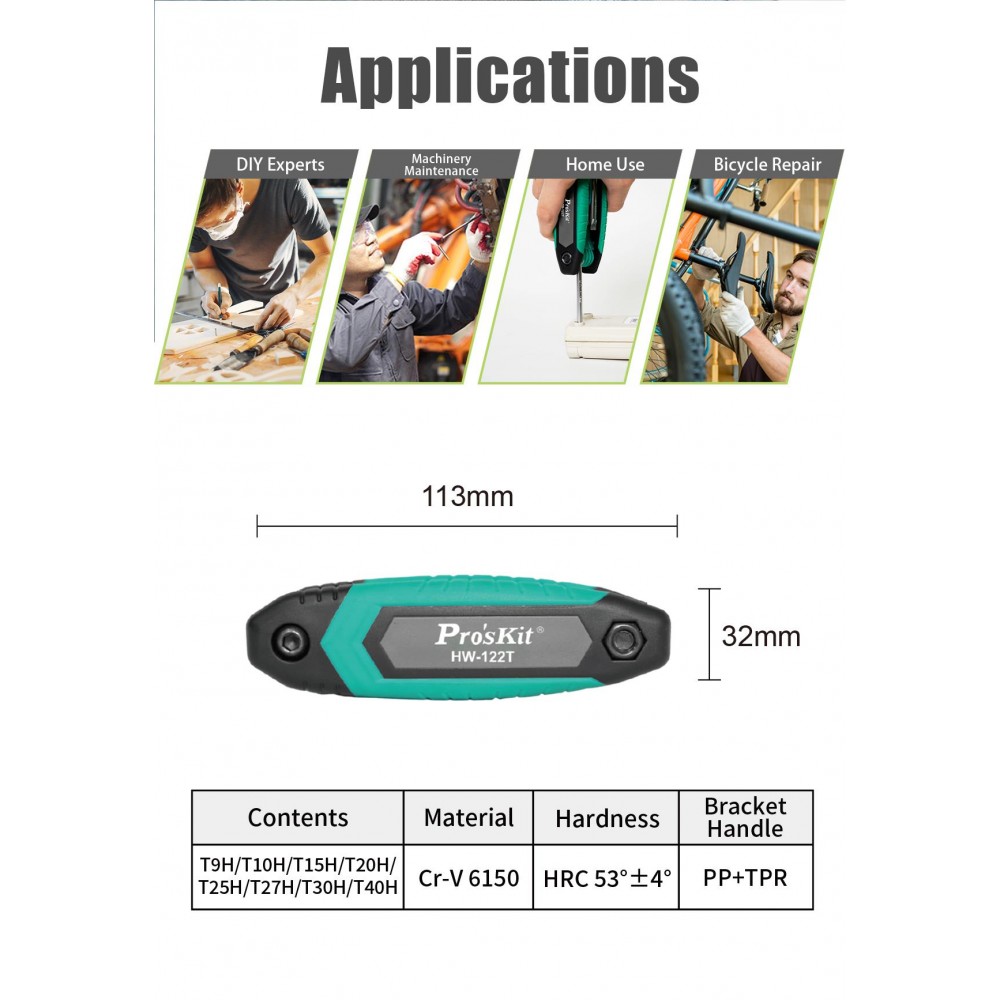 Juego de 8 llaves Torx hueco de mano de Proskit - HW-122T