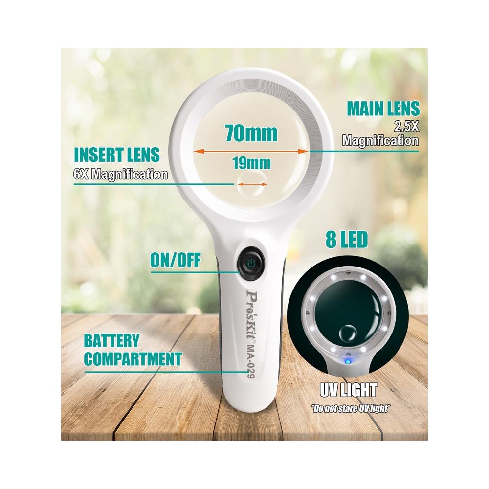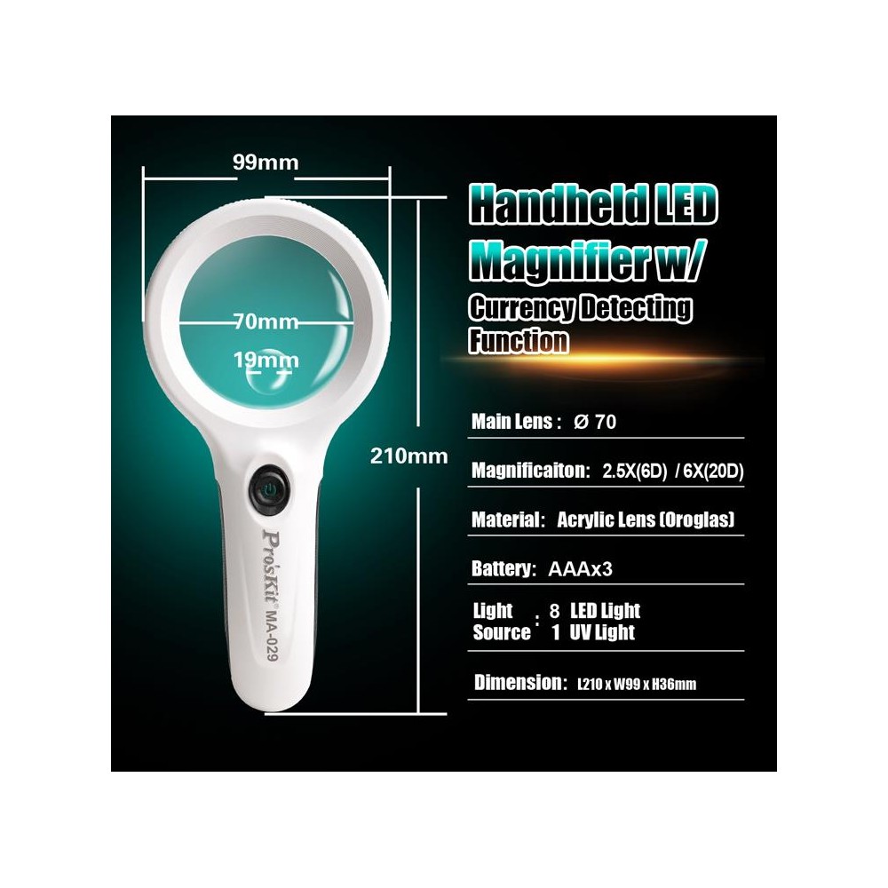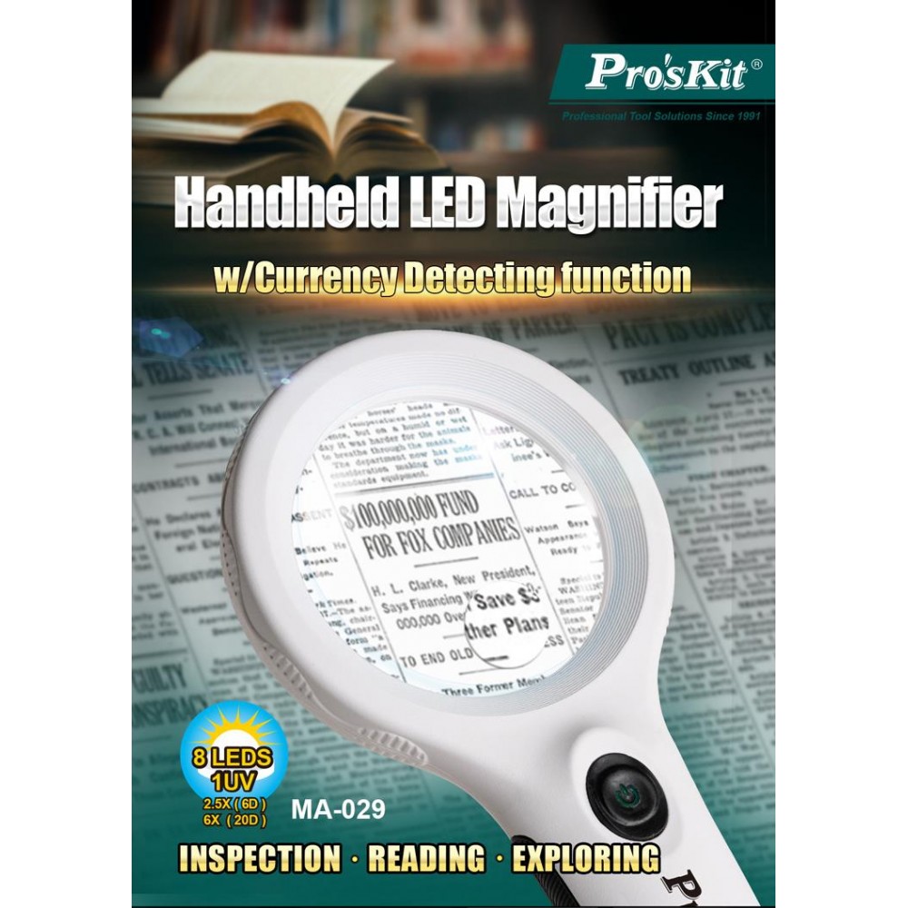MA-029 Lupa de mano con luz LED y UV 2.5x y 6x