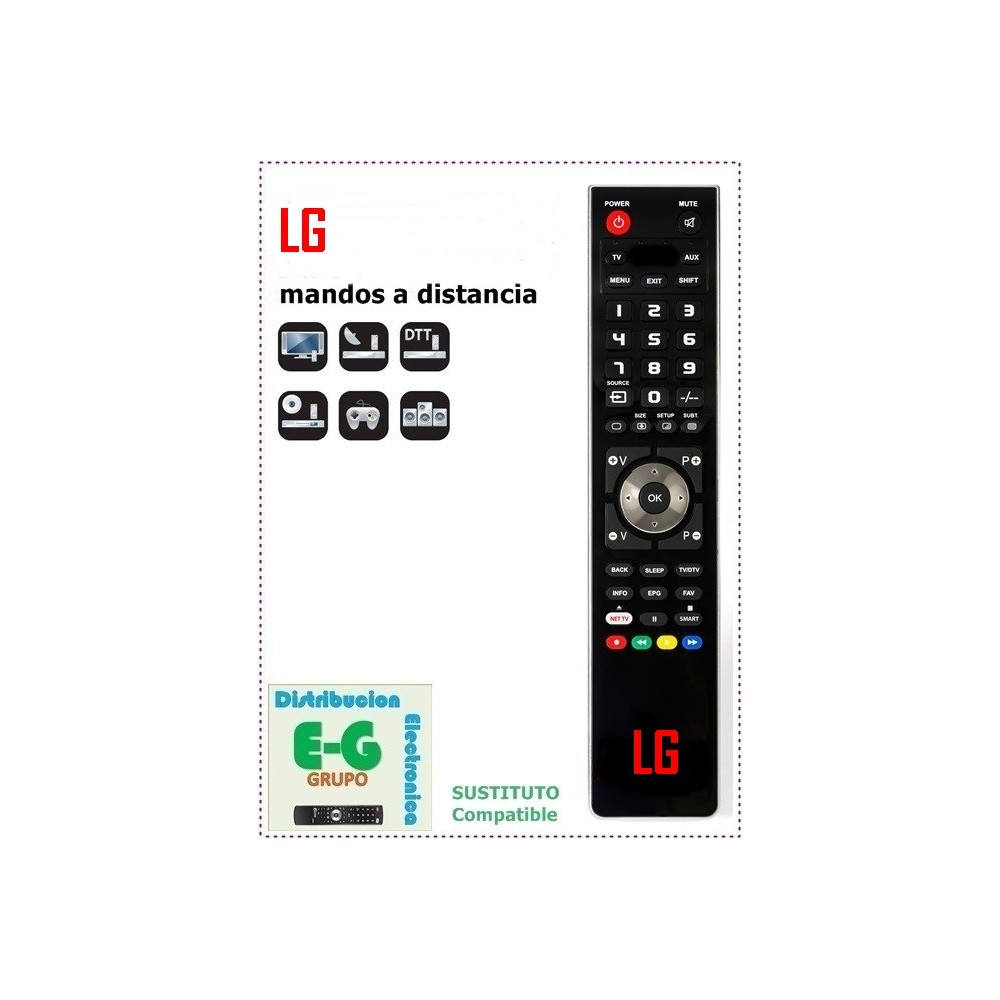 Para sustituir tú mando a distancia original LG. Sustituye a todos los modelos LG del mercado. Diseñado con una nueva e innovadora tecnología, se puede programar para funcionar en tu TV, DVD, VCR, SAT, TDT, AUX, HIFI, VIDEOCONSOLAS, PROYECTORES.. .  Con este mando se puede acceder a todas las funciones. Es un Mando de Sustitución del OriginalNo es un Mando Universal. No requiere código de configuración. Nosotros Te enviaremos su sustituto LG programado para el modelo que nos indiques. Pon las pilas AAA (no incluidas), y comienza a utilizar tu Mando.