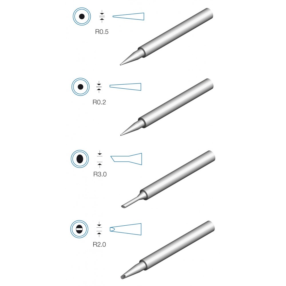 Contenido 1 Punta redonda 0.5mm, 1 Punta redonda 0.2mm, 1 Punta biselada de 3.0mm, 1 Punta plana de 2.0mm