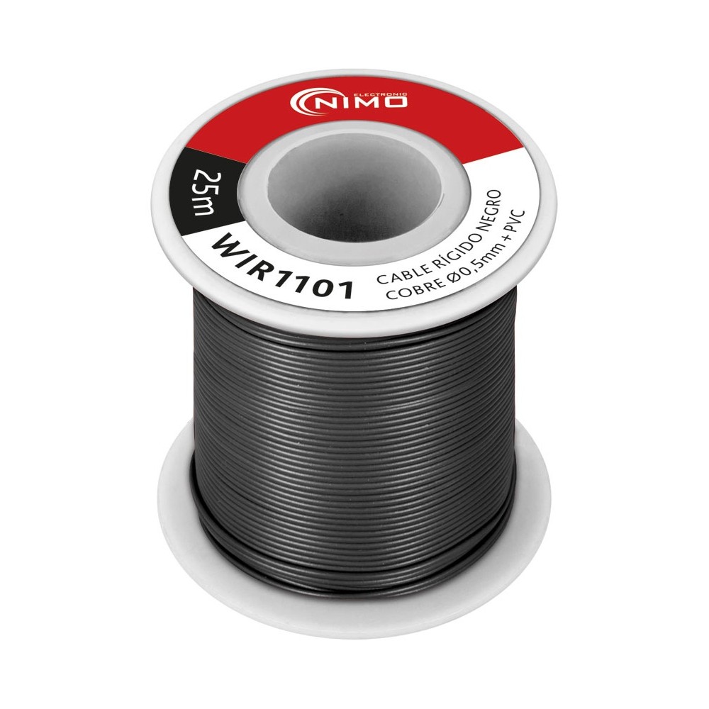 Rollo de Cable rígido 0.5mm, Cobre estañado, carrete 25m en PVC Negro - WIR1101