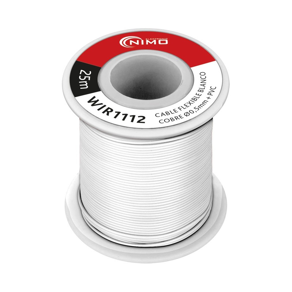 Rollo de Cable flexible 0.5mm, Cobre estañado, carrete 25m en PVC Blanco - WIR1112