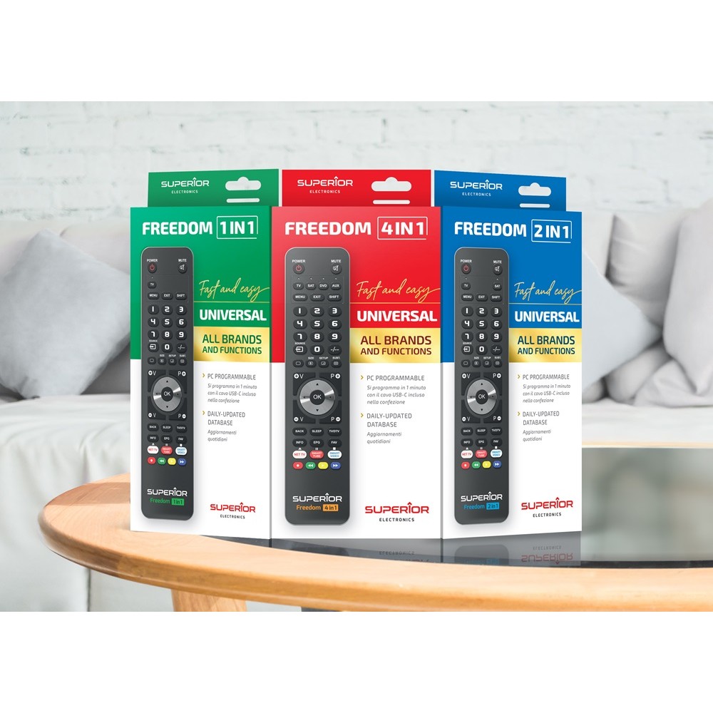 • Mando a distancia universal para hasta 2 aparatos  (El mando que se suministra en el Kit es el Freedom USB Type-C 2:1)