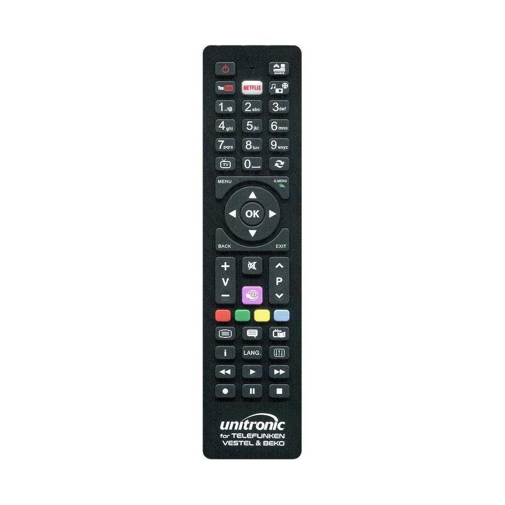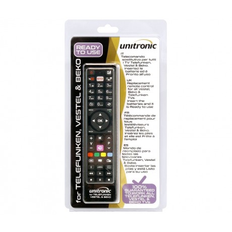 Diseño elegante y atractivo con botones similares a los utilizados por las marcas TELEFUNKEN, BEKO Y VESTEL lo que aporta una gran familiaridad del usuario final con el mando.Producto de alta calidad, debido al uso de un proceso de fabricación y materiales excelentes.Funciona con dos pilas tipo AAA(R3) no incluidas.