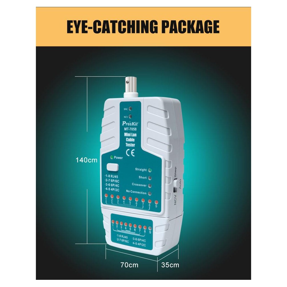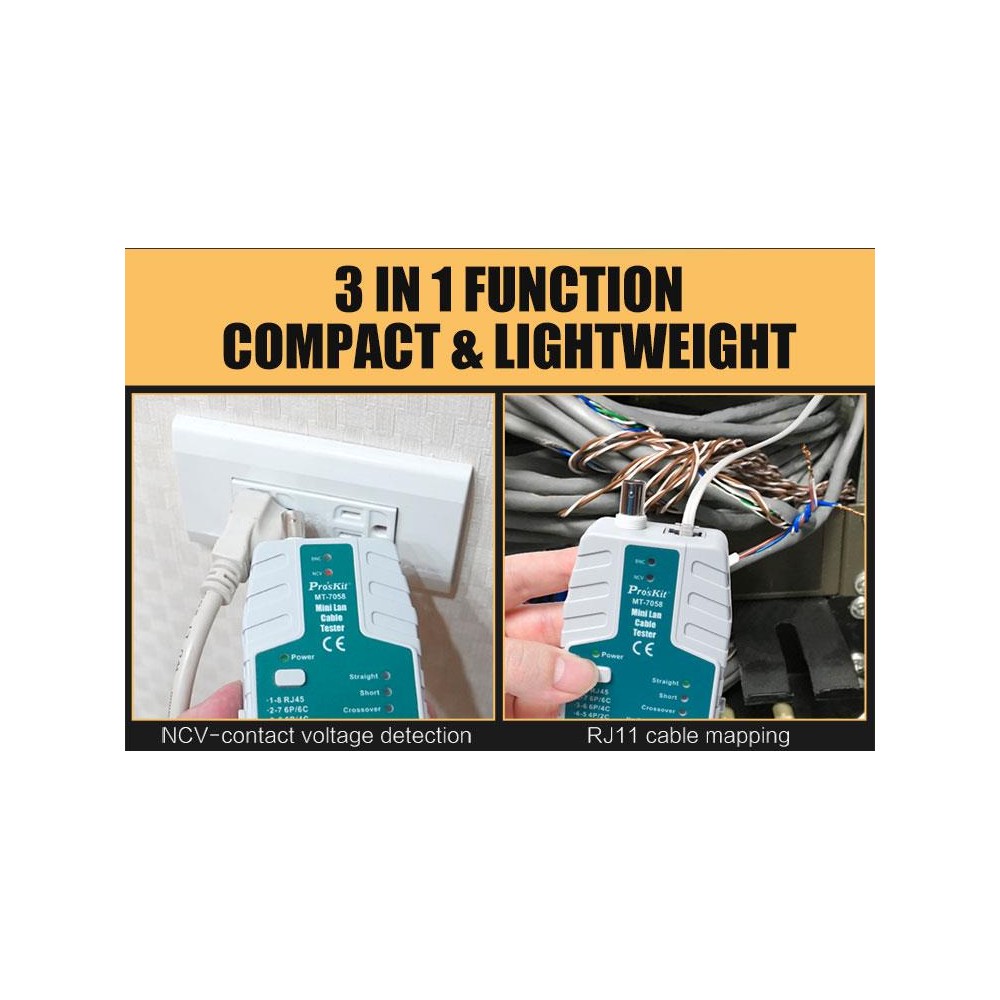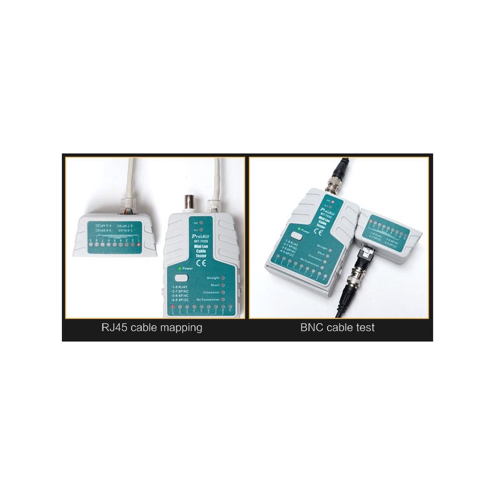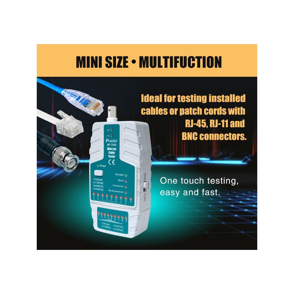 Mini tester de redes RJ y BNC con detector de voltaje de Proskit - MT7058