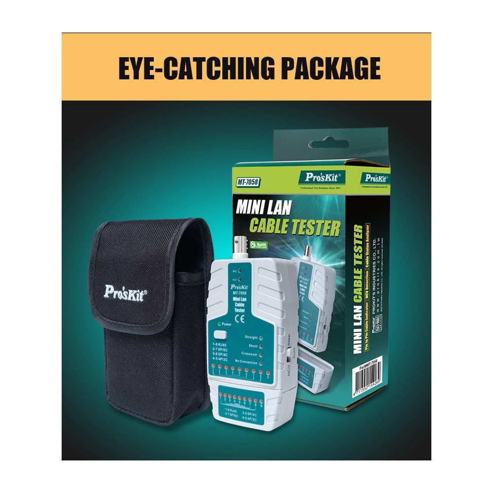 MT-8091 Marca PROSKIT Comprobador de líneas telefónicas de conectores modulares de Proskit...