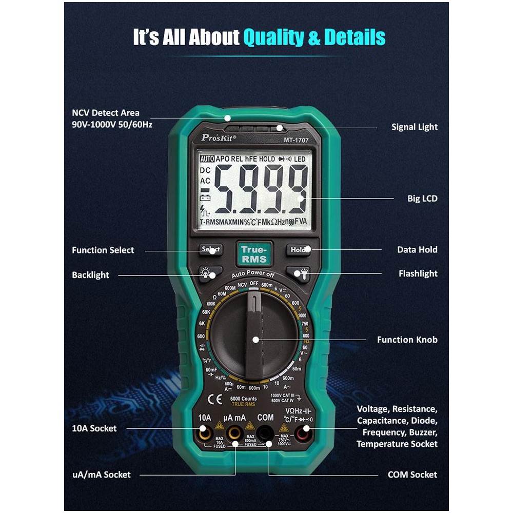 MT-1707 Multímetro digital multi rango TRUE-RMS CAT.IV 600V de Proskit