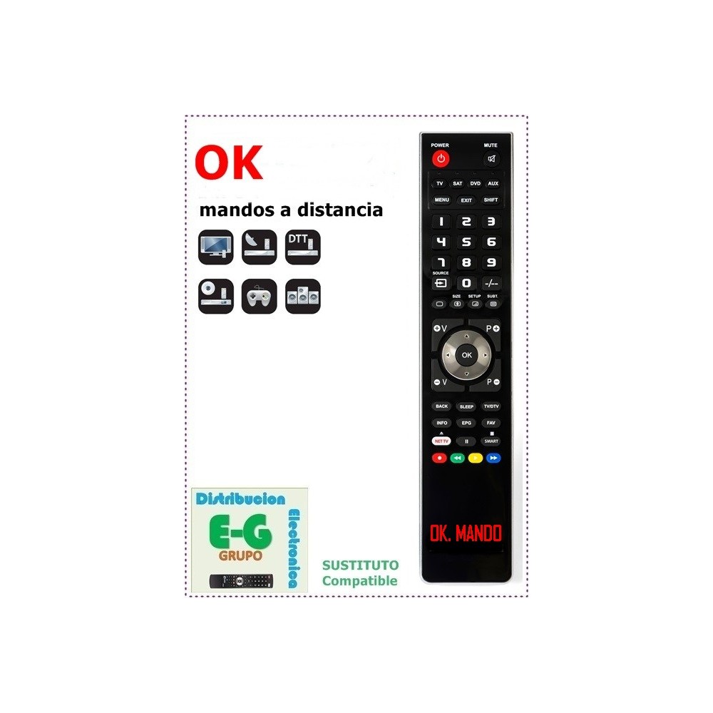 Para sustituir tú mando a distancia original OK.. Sustituye a todos los modelos OK. del mercado. Diseñado con una nueva e innovadora tecnología, se puede programar para funcionar en TV, DVD, VCR, SAT, TDT, AUX, HIFI, VIDEOCONSOLAS, PROYECTORES.... .  Con este mando se puede acceder a todas las funciones. Es un Mando de Sustitución del OriginalNo es un Mando Universal. No requiere código de configuración. Nosotros Te enviaremos su sustituto programado para el modelo que nos indiques. Pon las pilas AAA (incluidas), y comienza a utilizar tu Mando.